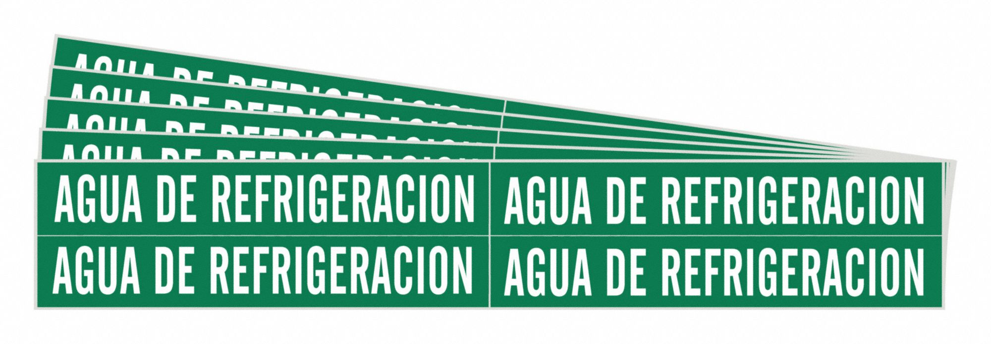 BRADY 83460-PK Pipe Marker, Agua De Refrigeration, Green, White, Fits 3/4 to 2 3/8 Inch Pipe OD