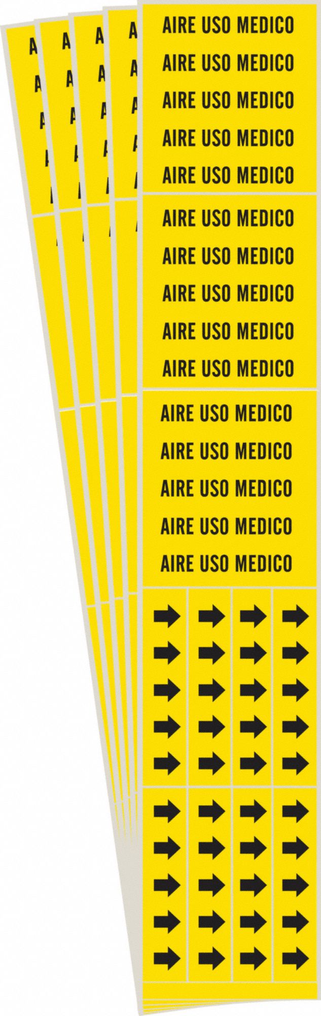 BRADY 83599-PK Pipe Marker, Aire Uso Medico, Yellow, Black, Fits 3/4 Inch and Smaller OD, 3 Pipe Marker
