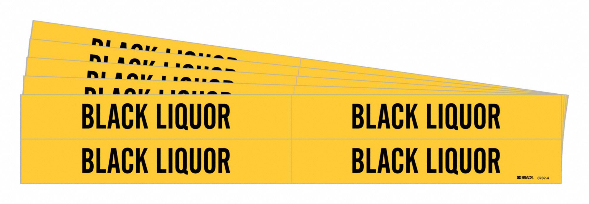 BRADY 8782-4-PK Pipe Marker, Black Liquor, Yellow, Black, Fits 3/4 to 2 3/8 Inch Pipe OD, 4 Pipe Marker