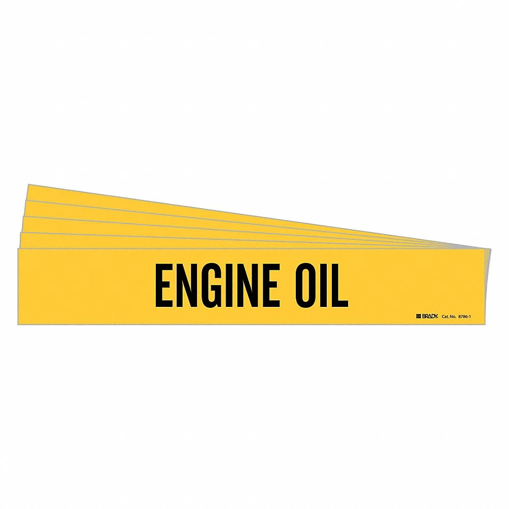 BRADY 8786-1-PK 171824 Pipe Marker, Engine Oil, Yellow, Black, Fits 2 1/2 to 7 7/8 Inch Pipe OD, 1 Pipe Marker