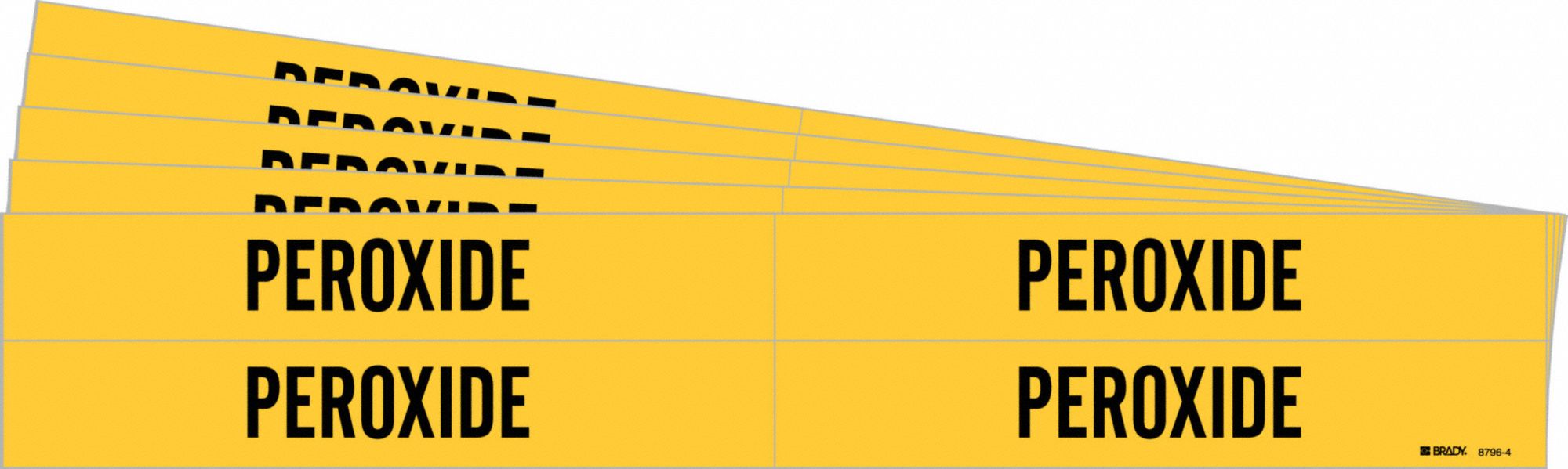 BRADY 8796-4-PK 171148 Pipe Marker, Peroxide, Yellow, Black, Fits 3/4 to 2 3/8 Inch Pipe OD, 4 Pipe Marker