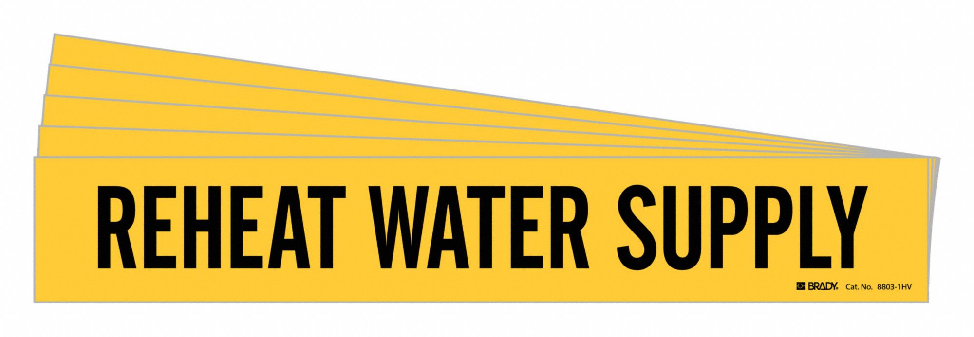 BRADY 8803-1HV-PK 172443 Pipe Marker, Reheat Water Supply, Yellow, Black, Fits 8 Inch and Larger Pipe OD