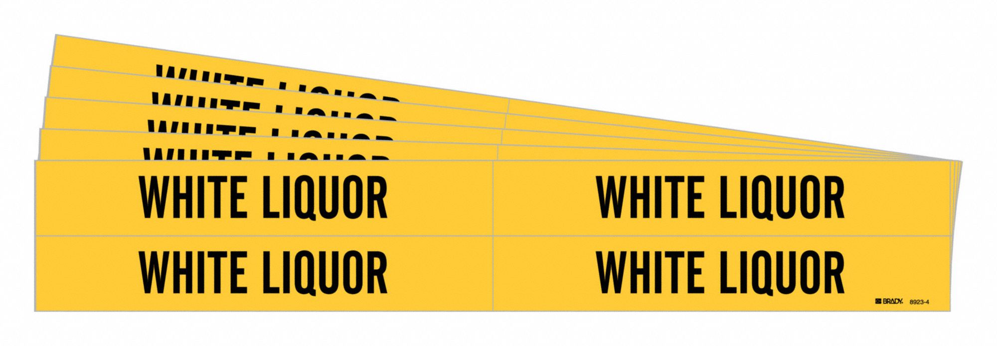 BRADY 8923-4-PK Pipe Marker, White Liquor, Yellow, Black, Fits 3/4 to 2 3/8 Inch Pipe OD, 4 Pipe Marker