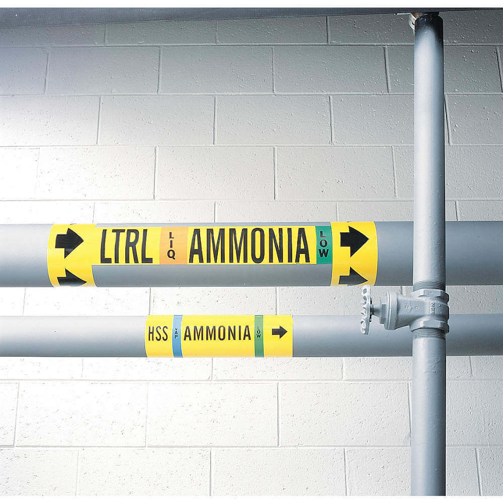 BRADY 90421 Pipe Marker, CD, LIQ, High, Fits 3/4 to 2 3/8 Inch Pipe OD, 4 Pipe Marker, Without Arrow