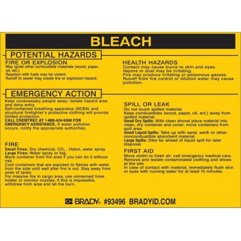 BRADY 93496 Label, Bleach, 3 3/4 x 4 1/2 Inch, Vinyl, Rectangle, English, 25 Label