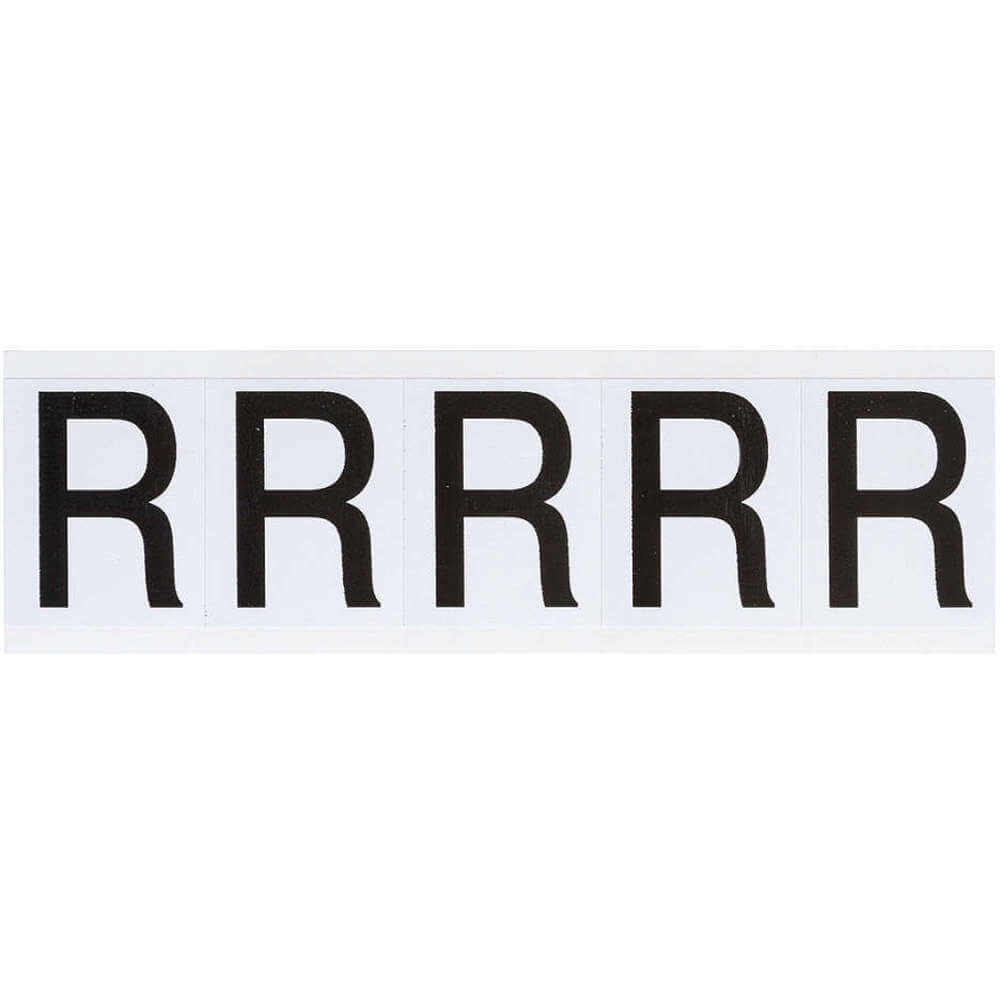 BRADY 9714-R Letter Label, 2 Inch Char Ht, Indoor/Outdoor, Non-Reflective, Helvetica, Black, R, Die Cut