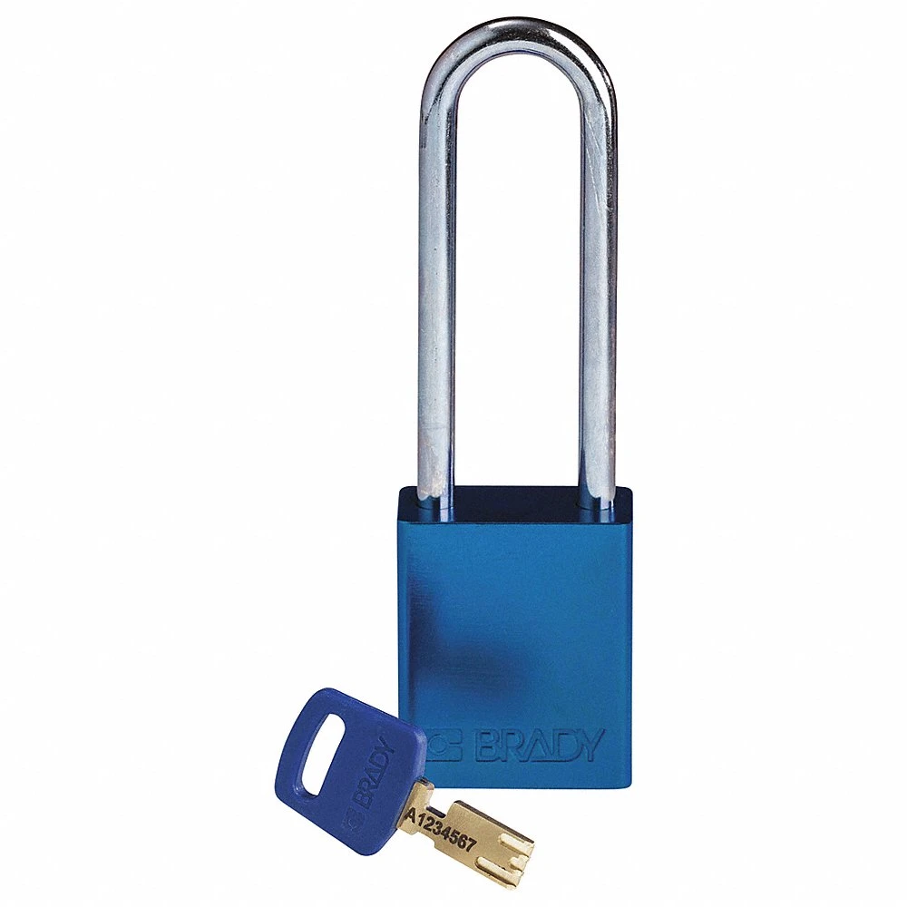 BRADY ALU-BLU-76ST-KD 150241 Lockout Padlock, Keyed Different, Aluminium, Standard Body Size, Steel, Extended, Blue