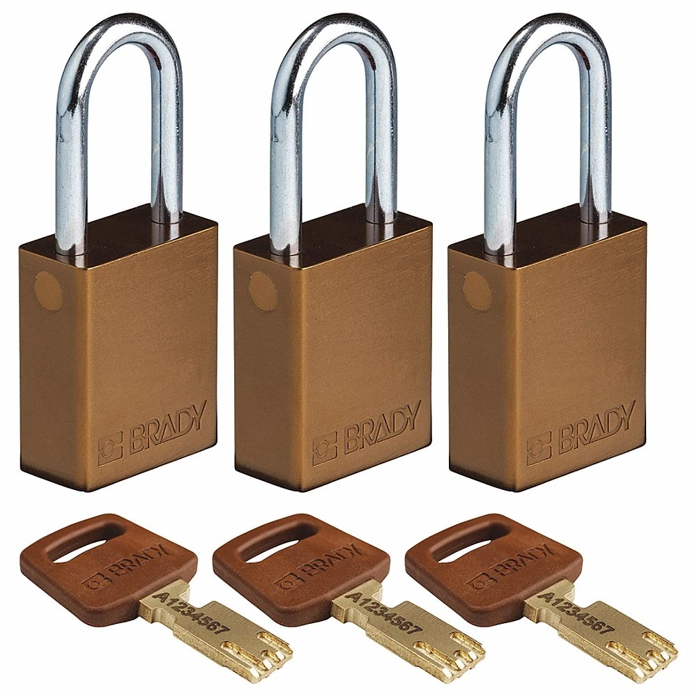 BRADY ALU-BRN-38ST-KA3PK Lockout Padlock, Keyed Alike, Aluminium, Standard Body Size, Steel, Brown