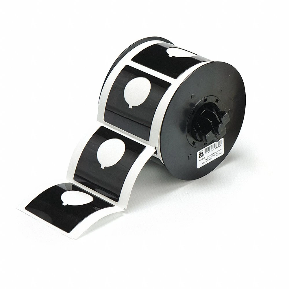 BRADY B30EP-170-593-BK 118075 Precut Label Roll, Circle with Notch, 2 13/32 x 2 13/32 Inch, Polyester, Black, Adhesive