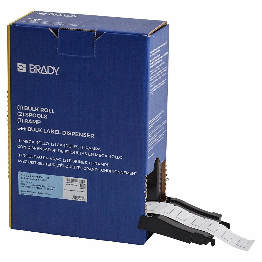 BRADY BM-250-1-312 174458 Sleeve, 1 Inch x 7/16 Inch, 1 Inch, Polyolefin, White, 8 AWG to 16 AWG Wire Gauge