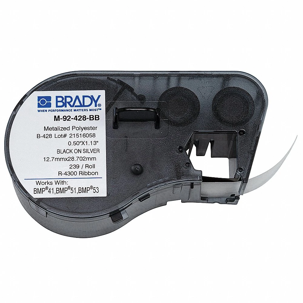 BRADY M-92-428-BB Precut Label Roll Cartridge, 1/2 x 1 1/8 Inch, 1 1/8 Inch, Black on Gray, 239 Label