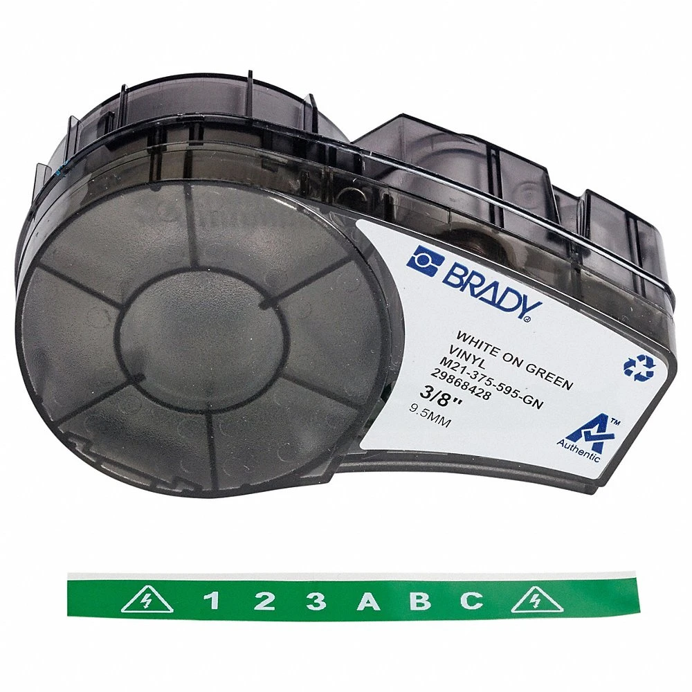 BRADY M21-375-595-GN 142802 Label Roll Cartridge, 3/8 Inch x 21 ft, Autoclavable Vinyl, White on Green, Outdoor