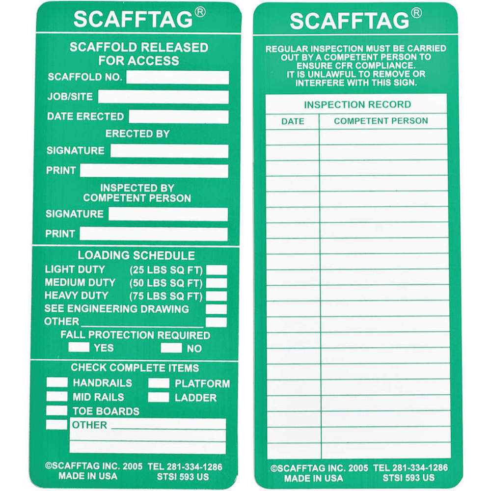 | Preprinted Text | Scafftag Scaffold Released For Access |