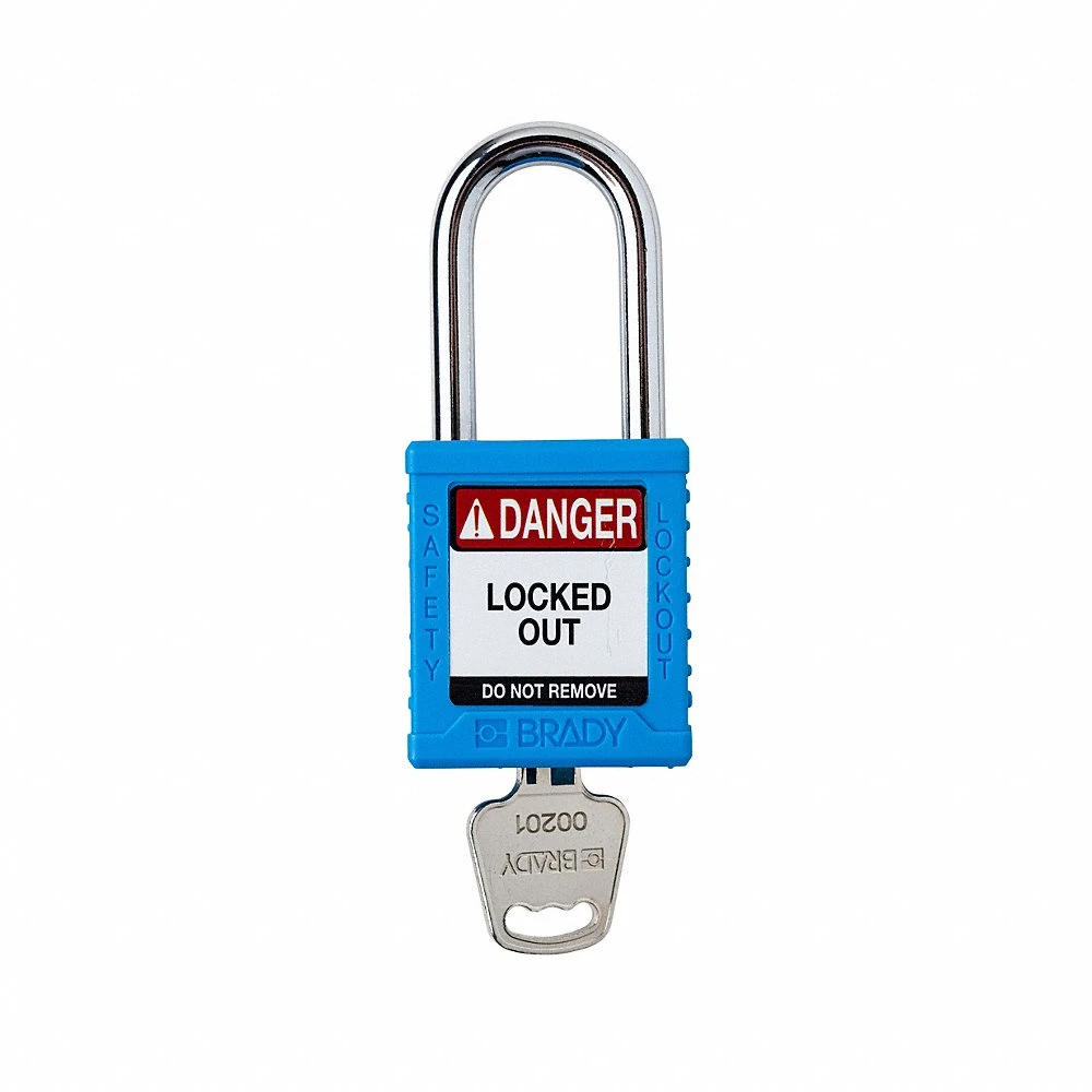 BRADY SDPL-BLU-38ST-KD 153454 Padlock, Keyed Different, Nylon, Standard Body Size, Steel, Blue