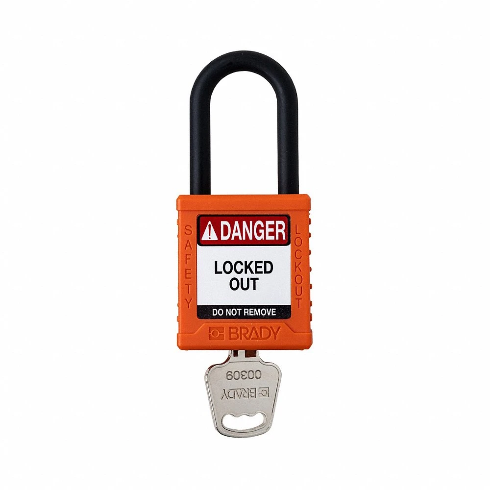 BRADY SDPL-ORG-38PL-KD 153558 Padlock, Keyed Different, Nylon, Standard Body Size, Plastic, Orange