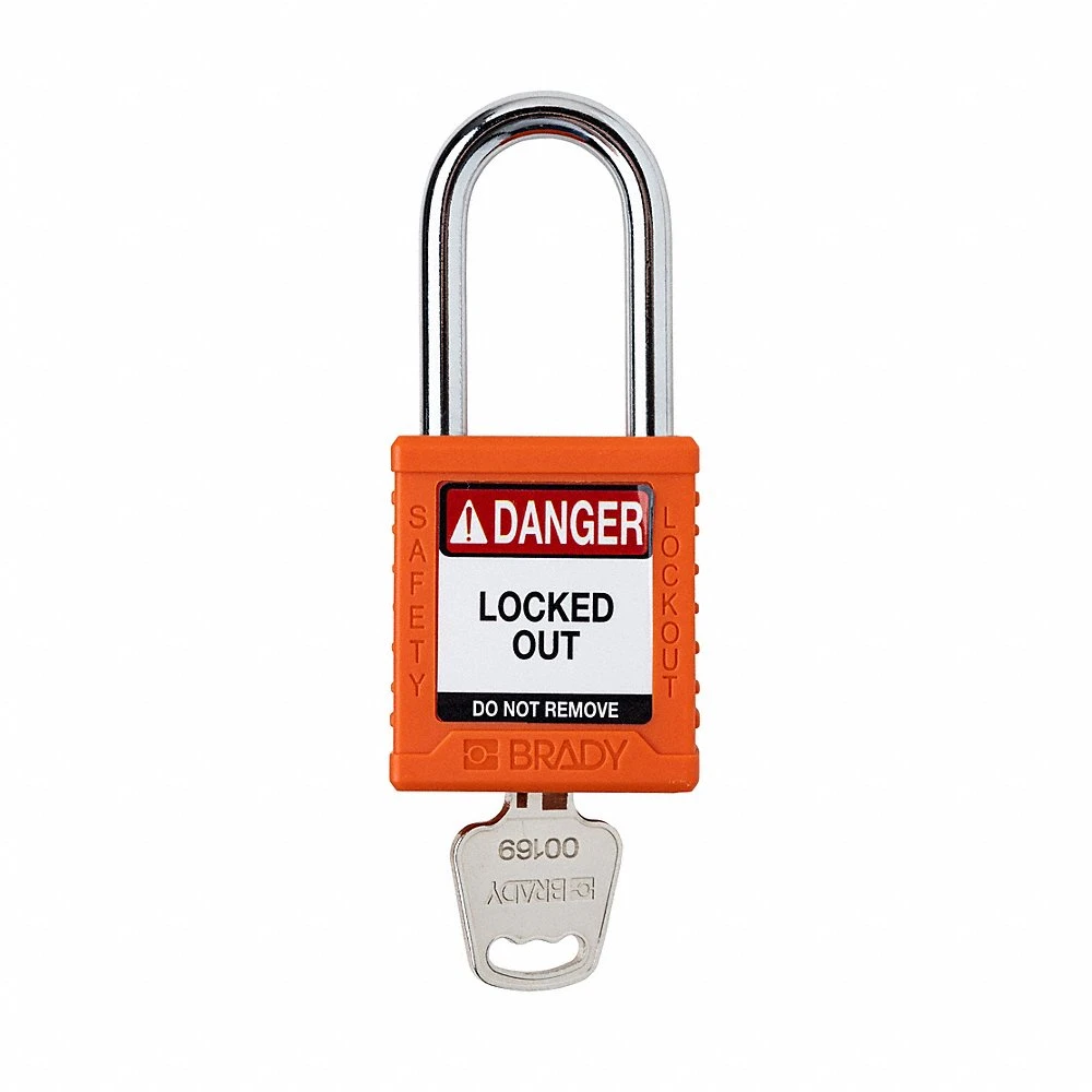 BRADY SDPL-ORG-38ST-KD 153455 Padlock, Keyed Different, Nylon, Standard Body Size, Steel, Orange
