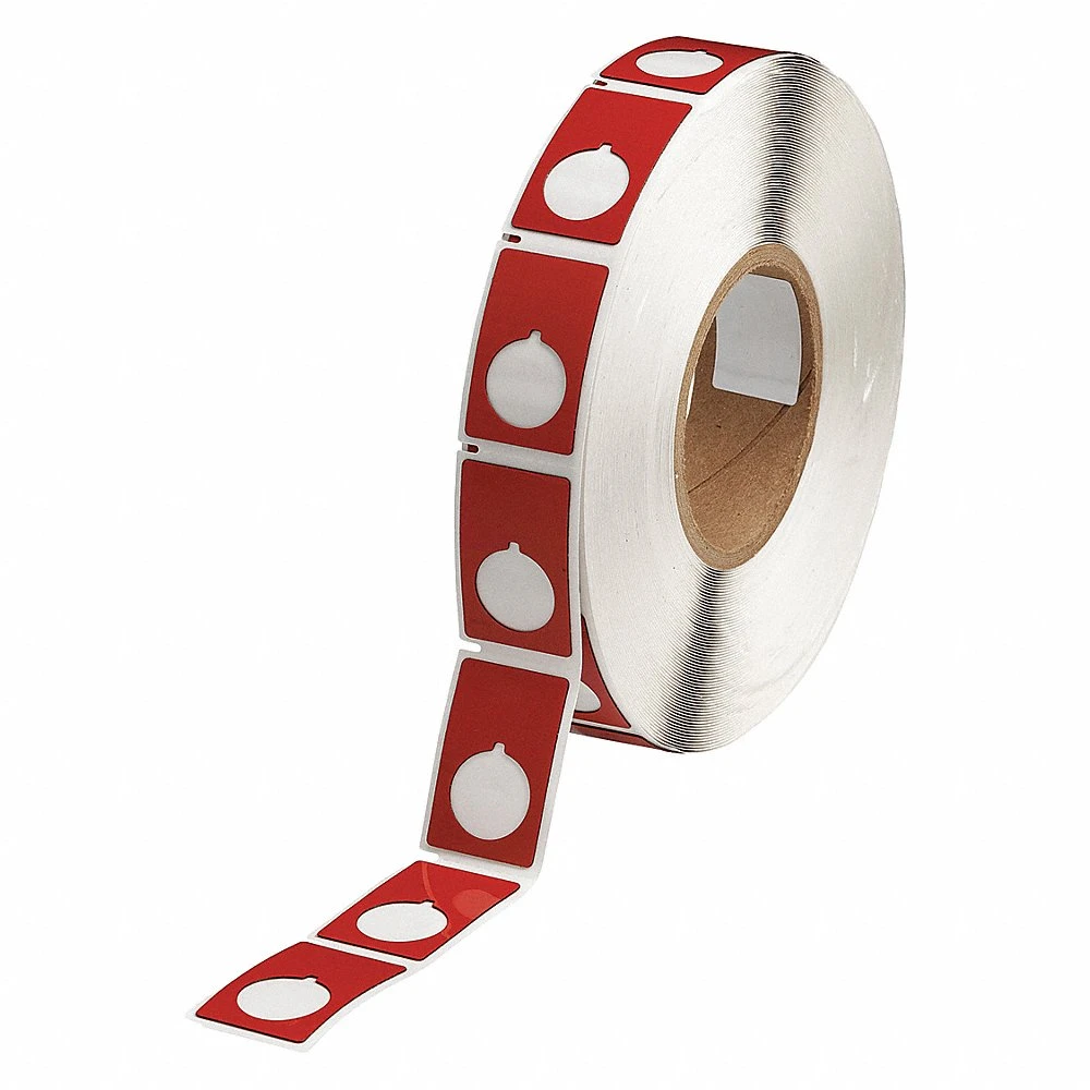 BRADY THTEP-168-593-.5RD 64399 Precut Label Roll, Circle with Notch, 1 29/32 x 1 13/64 Inch, Polyester, Red, Adhesive