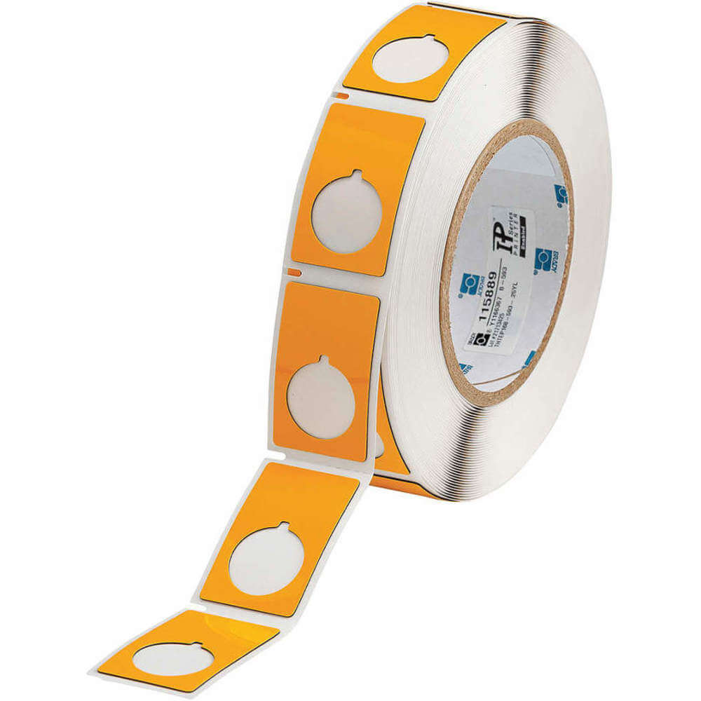 BRADY THTEP168-593-.25YL 115889 Precut Label Roll, Circle with Notch, 1 29/32 x 1 13/64 Inch, Polyester, Yellow, Adhesive
