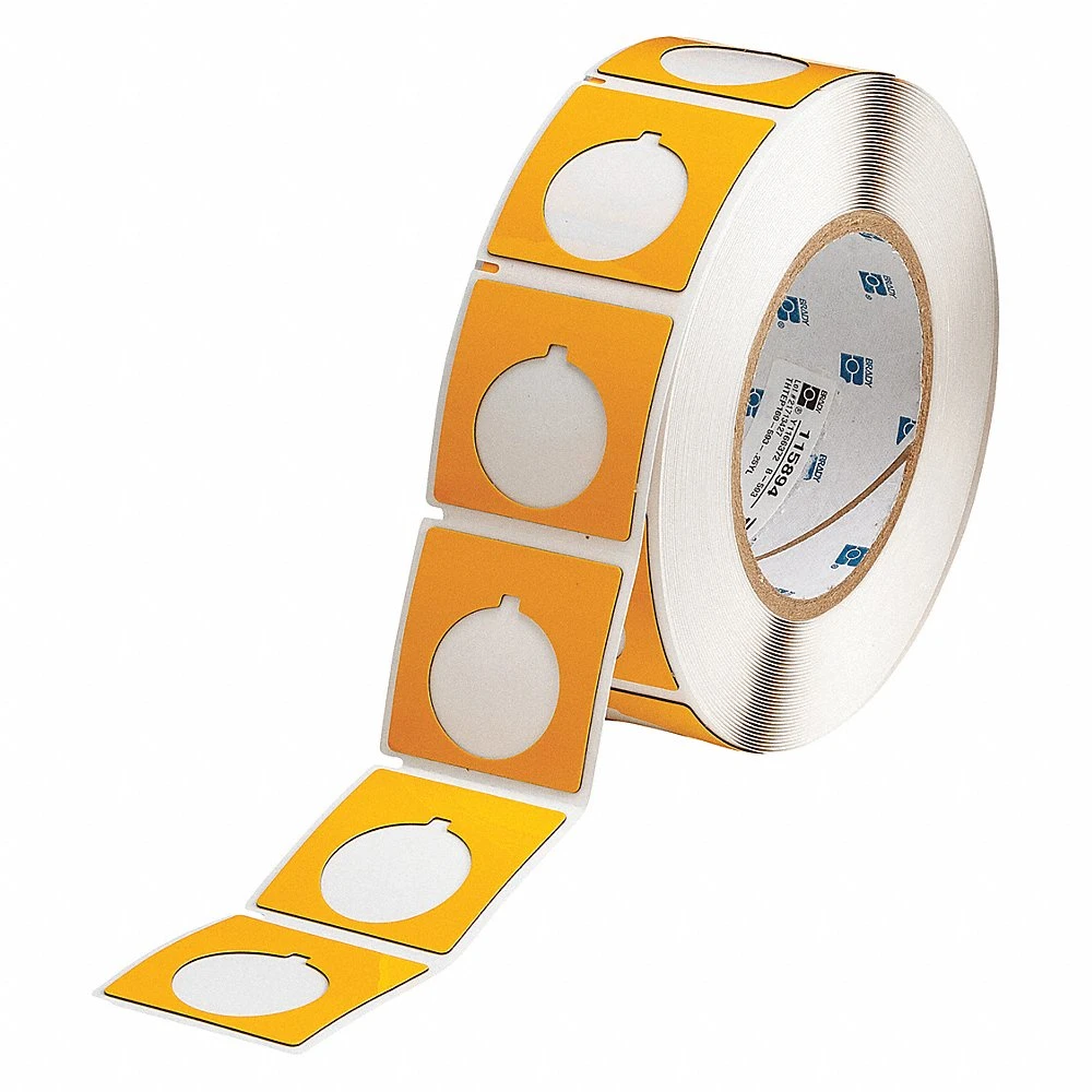 BRADY THTEP169-593-.25YL 115894 Precut Label Roll, Circle with Notch, 1 51/64 x 1 51/64 Inch, Polyester, Yellow