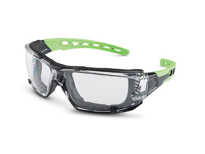 BRASS KNUCKLE BKDST-1010N Safety Glass, Clear Lens, Green Accent, Black Frame, Anti Fog
