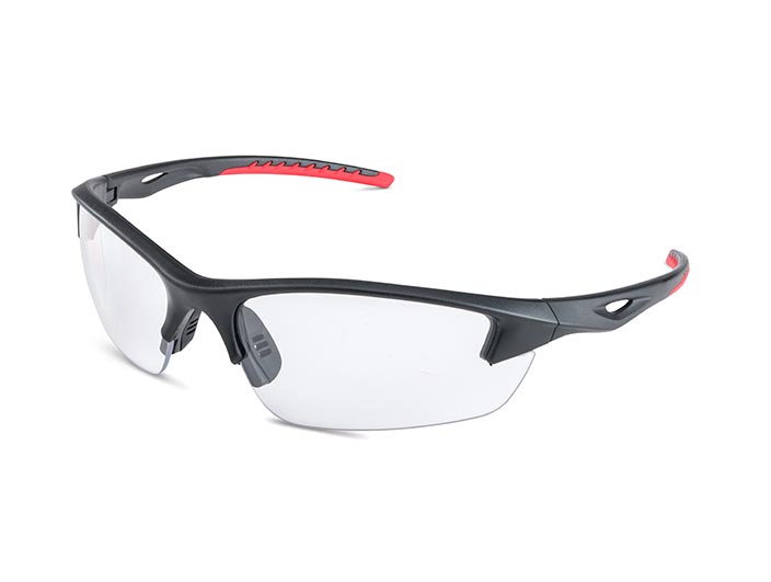 BRASS KNUCKLE BKFIX-3060NP Safety Glass, Clear Lens, Red Accent, Black Frame, Anti Fog
