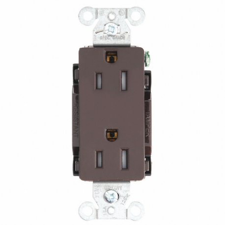 BRYANT DRS15TR Receptacle, Decorator Duplex, 5-15R, 15 A, 125V AC, Brown, 2 Poles, Screw Terminals