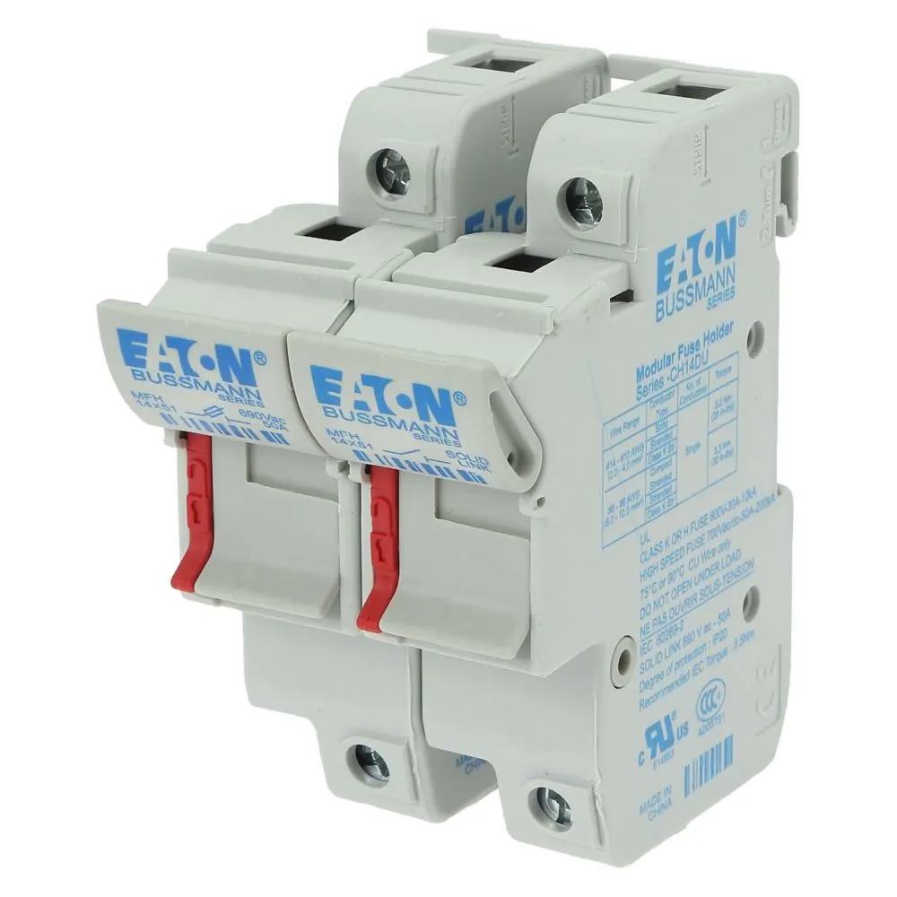 - Bussmann series 14x51mm modular fuse holders are suitablefor use with standard cylindrical fuses and high speed FW typeferrule fuses. With DIN-Rail or panel mount flexibility, their compactdimensions helps reduce space, allows for higher cable bendingradius. Low watts loss and wide range of accessories make themideally suited for most industrial applications.
