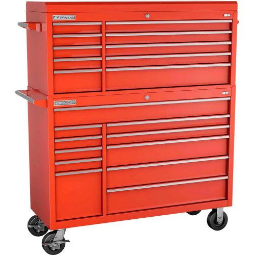 CHAMPION TOOL STORAGE FMP5421RC-RD Cabinet, 54 x 20 Inch Size, 21 Drawers, Top Chest/Cabinet, Casters, Red