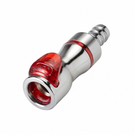 COLDER PRODUCTS COMPANY LQ4D17006RED Quick Disconnect, Chrome Ca360 Brass, 3/8 Inch Size, Coupler x Barbed, Shut-Off