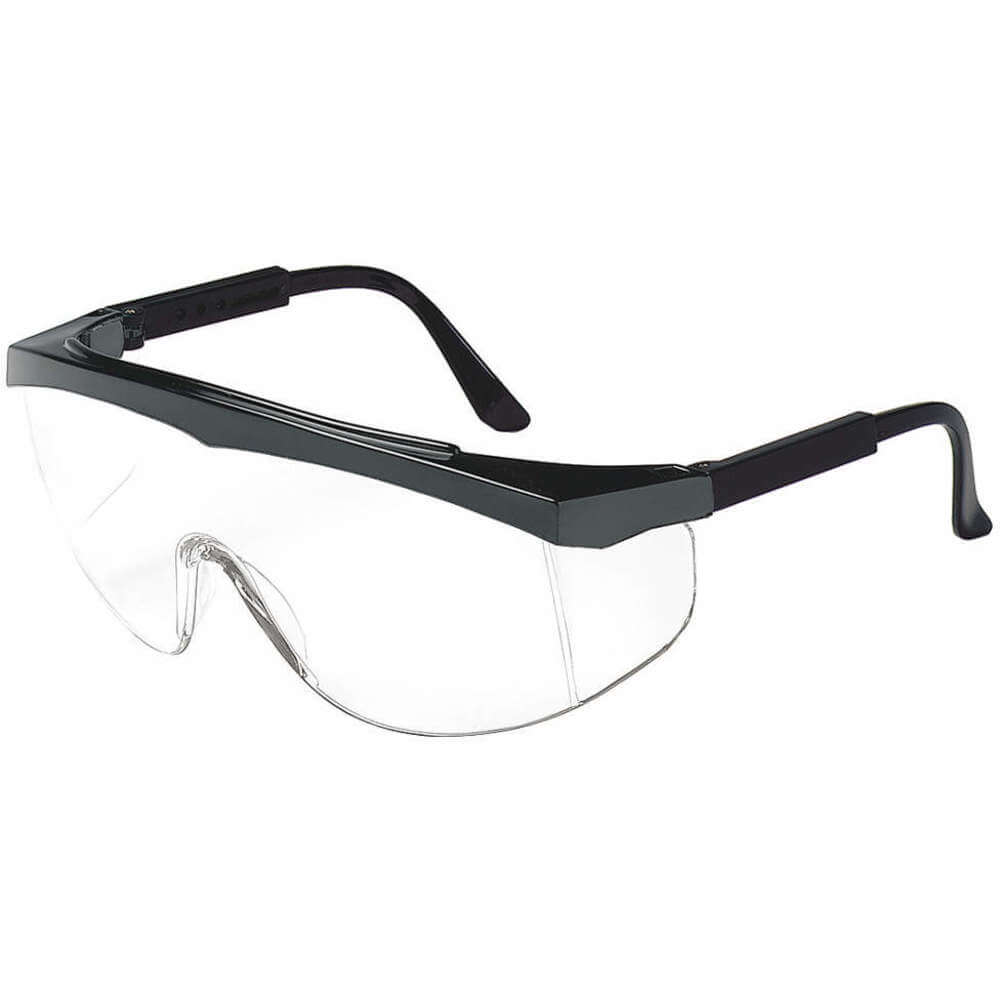 CONDOR 1VT99 Safety Glasses, Anti-Scratch, Wraparound Frame, Half-Frame, Black, Adj