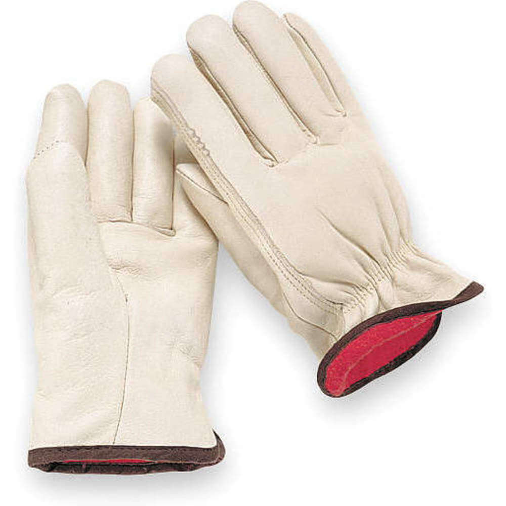 CONDOR 3AJ48 Leather Gloves, L, Cowhide, Full Finger, Shirred Slip-On Cuff, 1 PR, White
