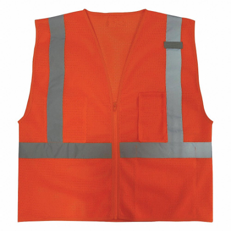 CONDOR 3ZDR8 High Visibility Vest, ANSI Class 2, U, 2XL, Orange, Mesh Polyester, Zipper, Single