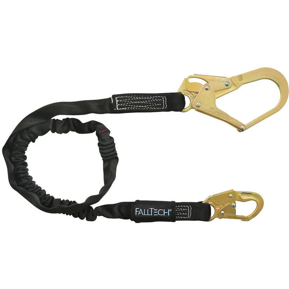 CONDOR 45J290 Shock-Absorbing Lanyard, Tubular Webbing, Steel Rebar Hook, Steel Snap Hook, Black