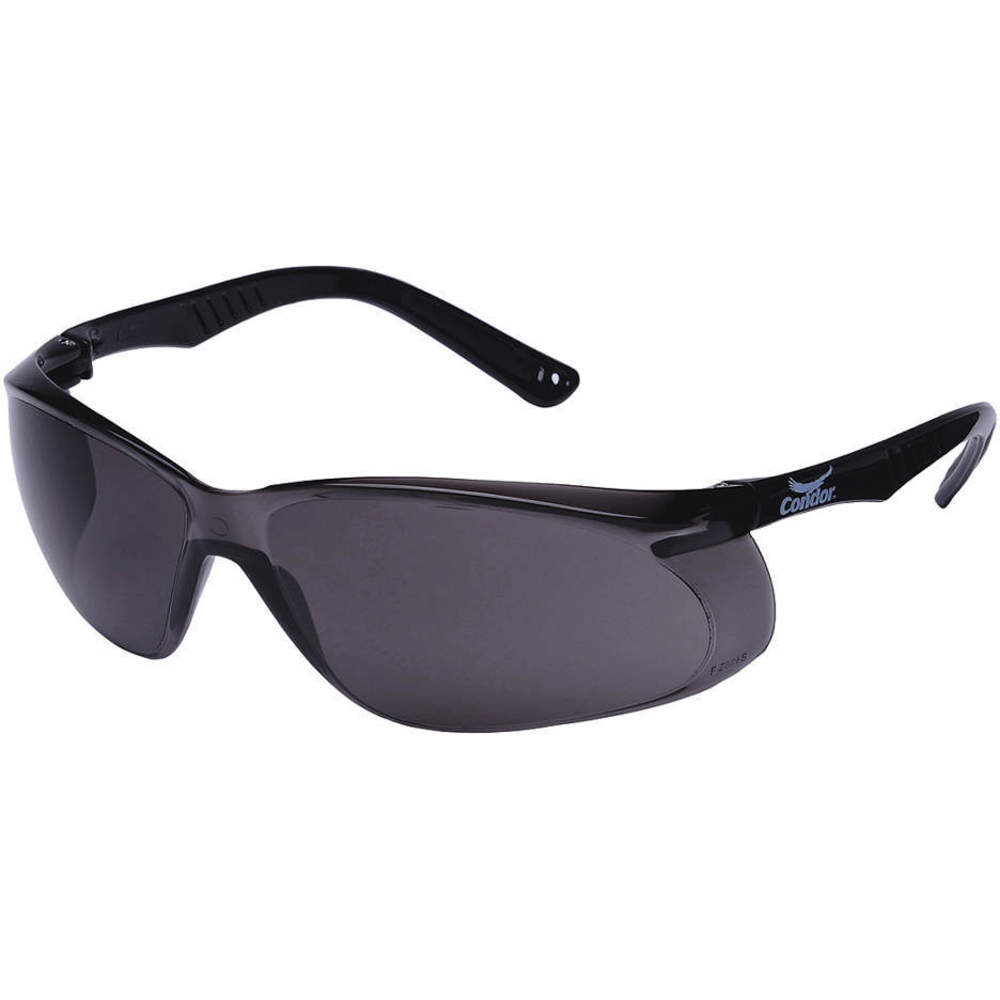 CONDOR 4VCK3 Safety Glasses, Anti-Scratch, Wraparound Frame, Frameless, Gray, Black