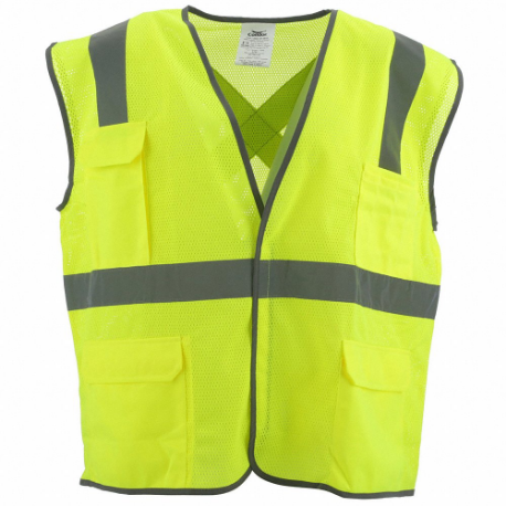 CONDOR 53YM23 High Visibility Vest, ANSI Class 2, X, 4XL/5XL, Lime, Mesh Polyester, Hook-and-Loop