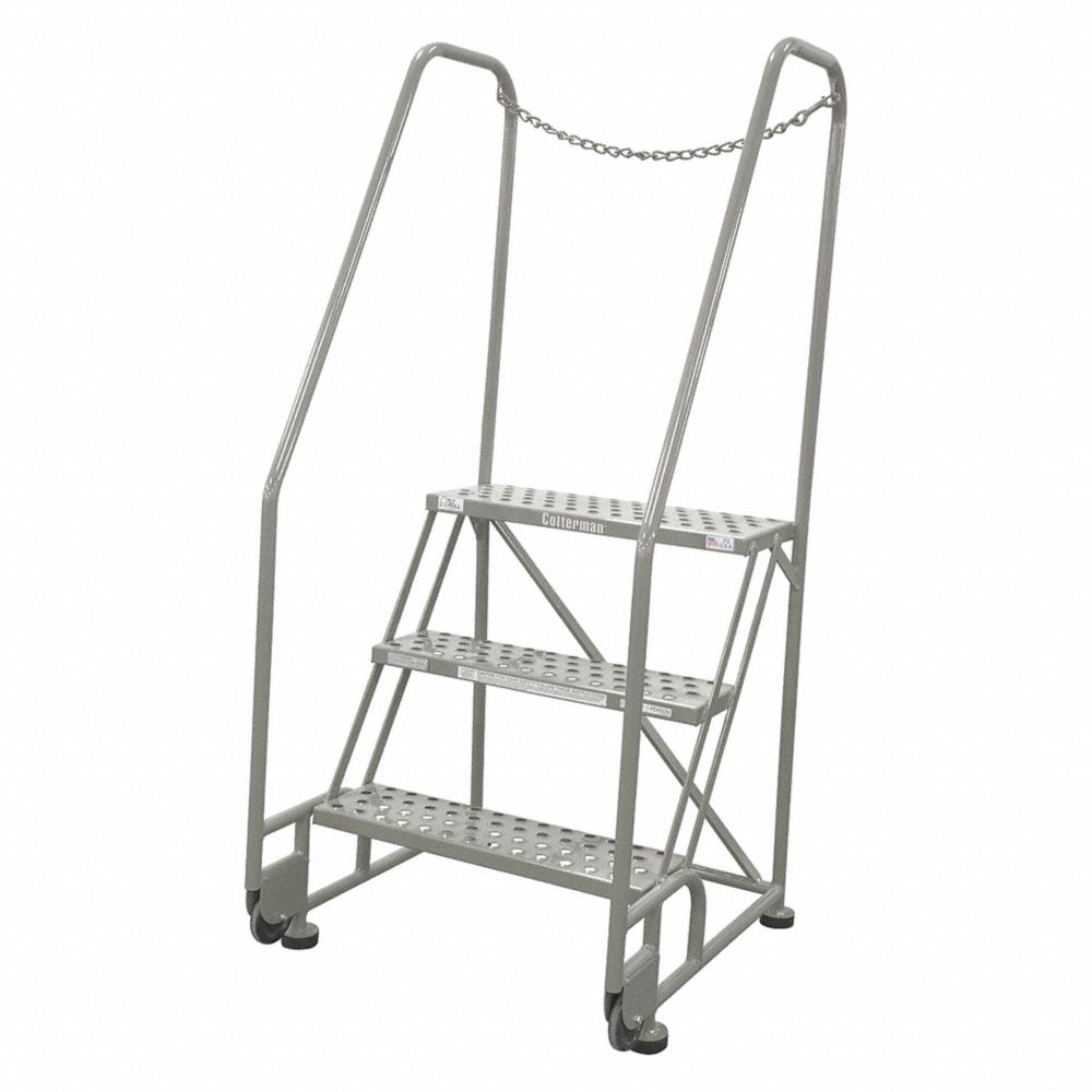 COTTERMAN 3TR26A1E10B8D3C1P6 Tilt and Roll Ladder, 3 Step, Expanded Metal Tread, 60 Inch Height
