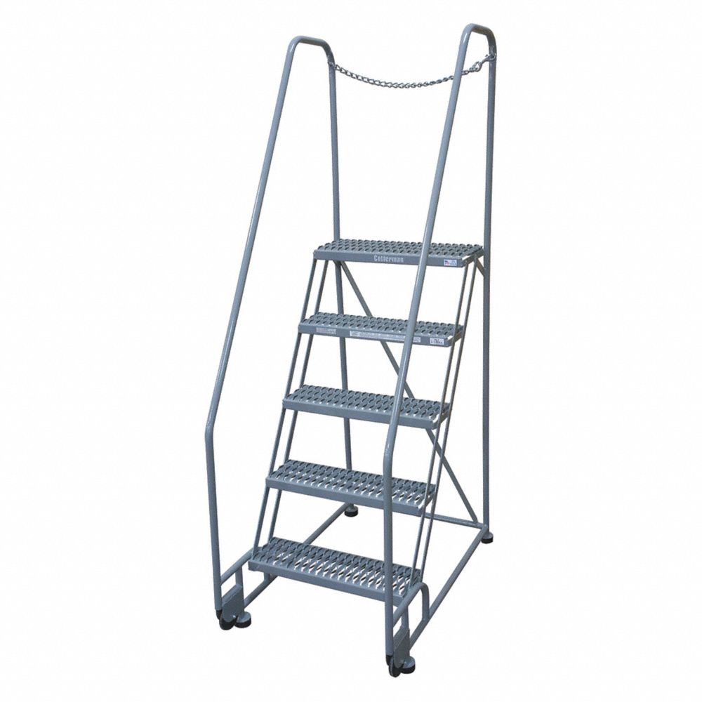 COTTERMAN 5TR18A3E10B8D3C1P6 Tilt and Roll Ladder, 5 Step, Serrated Step Tread, 80 Inch Height, 450 Lbs Load