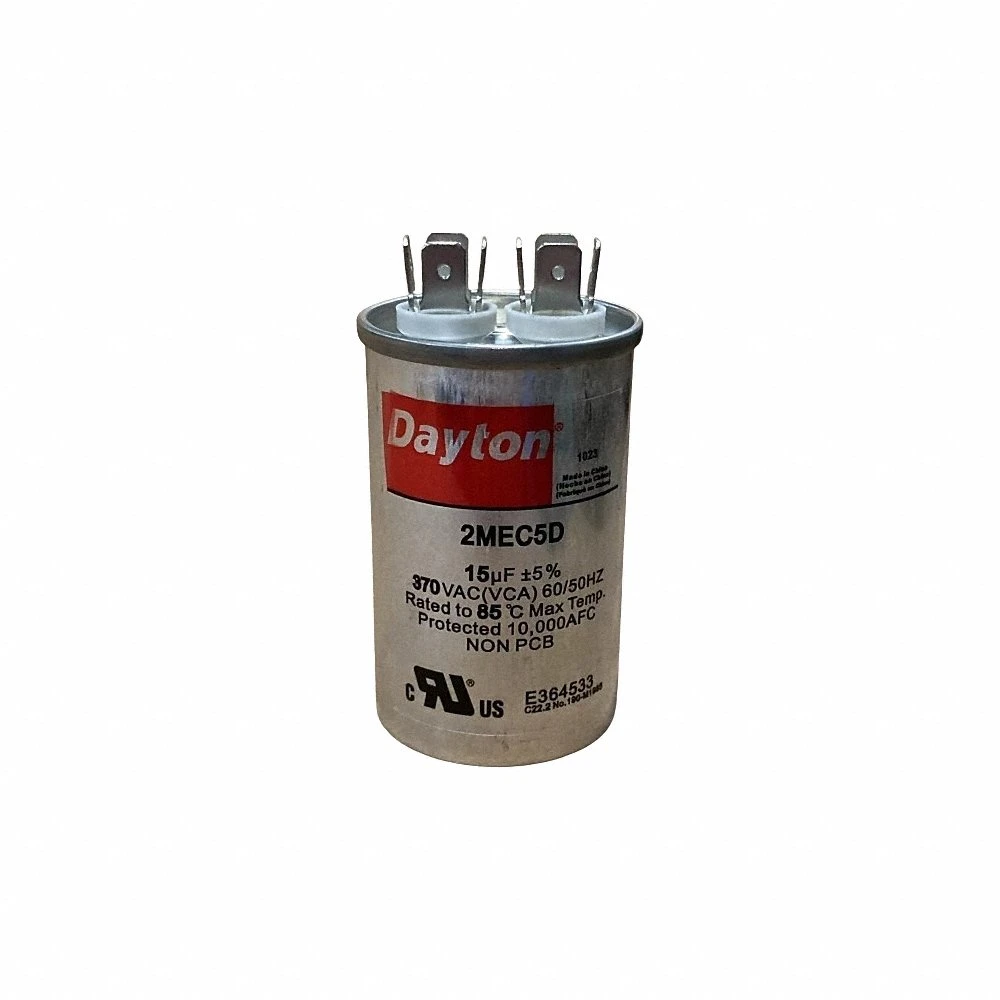 DAYTON 2MEC5 Motor Run Capacitor, Round, 370V AC, 15 mfd, 3 Inch Overall Height