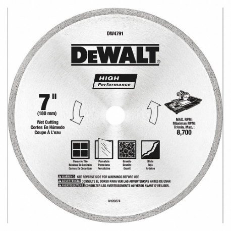 DEWALT DW4791 Diamond Saw Blade, 7 Inch Blade Dia, 5/8 Inch Arbor Size, Wet Good