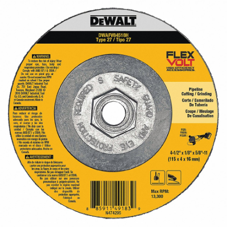 DEWALT DWAFV84518H Depressed Center Wheels, 4 1/2 Inch Dia, 5/8-11 Inch Hole, Ceramic, 24 Grit, Type 27