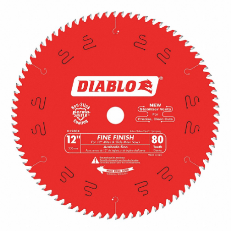 DIABLO D1280X Circular Saw Blade, 12 Inch Blade Dia, 80 Teeth, 0.118 Inch Cut Width, 1 Inch Arbor Size