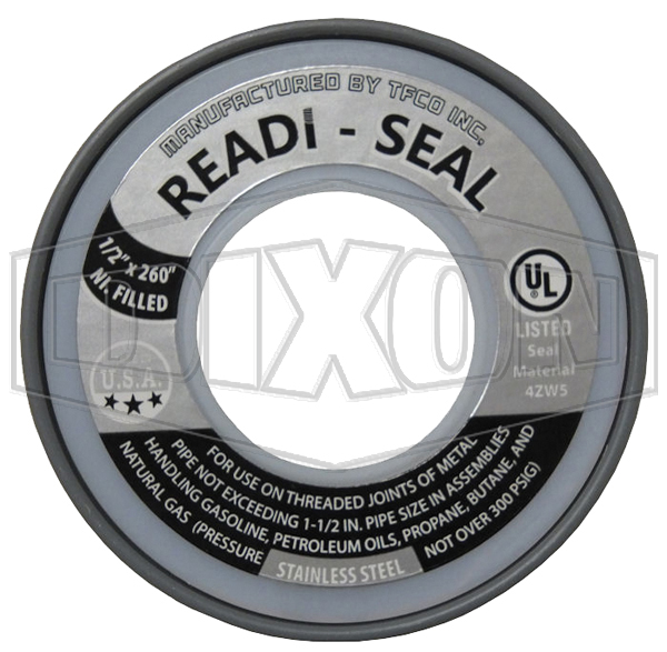 DIXON TTA50SS Stainless Steel PTFE Tape, 260 Inch Length, 1/2 Inch Size, -450 To 550 Deg. F