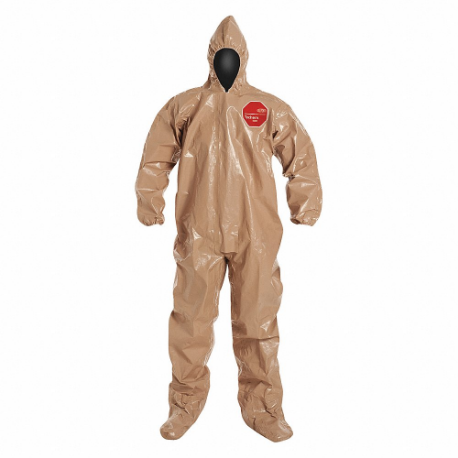 DUPONT C3122TTN2X0006BN Hooded Chemical Resistant Coveralls, Tychem 5000, Taped Seam, Tan, 2XL, Elastic Cuff