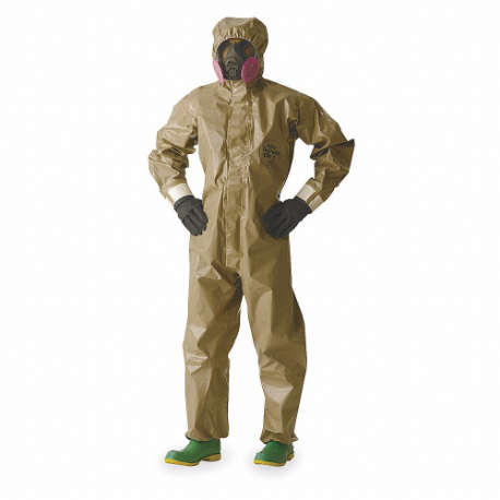 DUPONT C3185TTNLG000600 Hooded Chemical Resistant Coveralls, Tychem 5000, Light Duty, Taped Seam, Tan, L, B