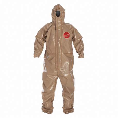 DUPONT C3198TTNLG000600 Hooded Chemical Resistant Coveralls, Tychem 5000, Light Duty, Taped Seam, Tan, L, B