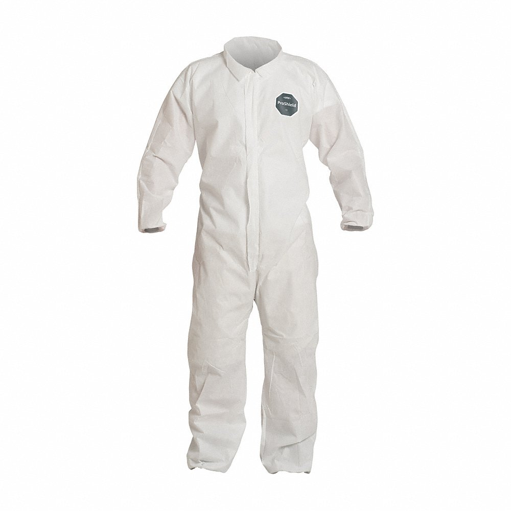 DUPONT PB125SWH6X002500 Collared Coverall, SMS, Light Duty, Serged Seam, White, 6XL
