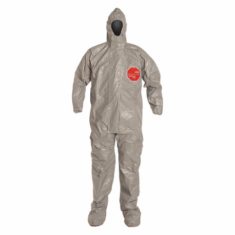 DUPONT TF169TGY2X000600 Hooded Chemical Resistant Coveralls, Tychem 6000, Light Duty, Taped Seam, Gray, 2XL, B