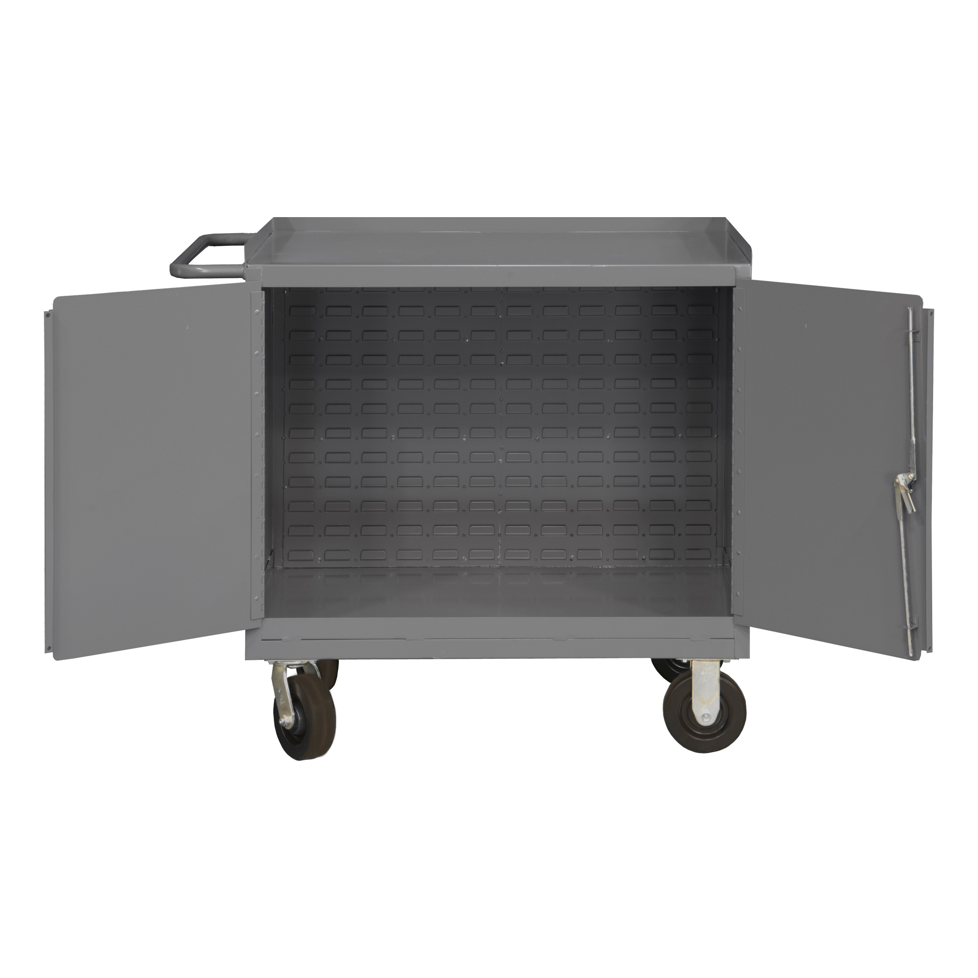 DURHAM MANUFACTURING 3100-BLP-95 Mobile Bench Cabinet, Louvered Panel Back, Size 25-13/16 x 42-1/8 x 37-3/4 Inch