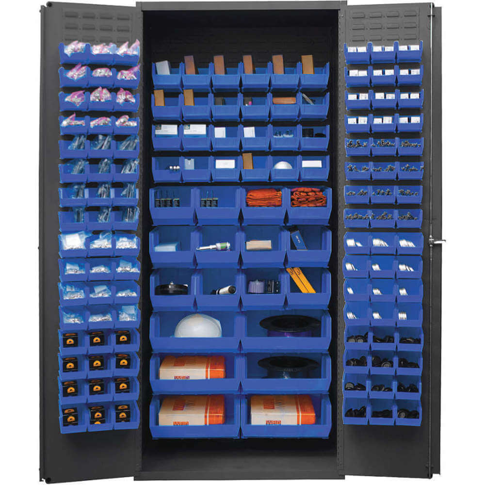DURHAM MANUFACTURING 3500-138B-5295 Industrial Cabinet, 14 Gauge, 138 Bin Blue