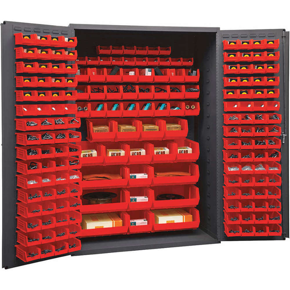 DURHAM MANUFACTURING 3502-186-1795 Industrial Cabinet, 14 Gauge, 186 Bin, Red